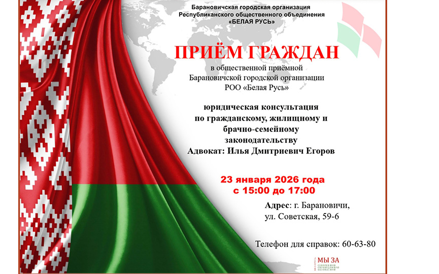 Консультацию юриста барановичане смогут получить в городской общественной организации «Белая Русь»