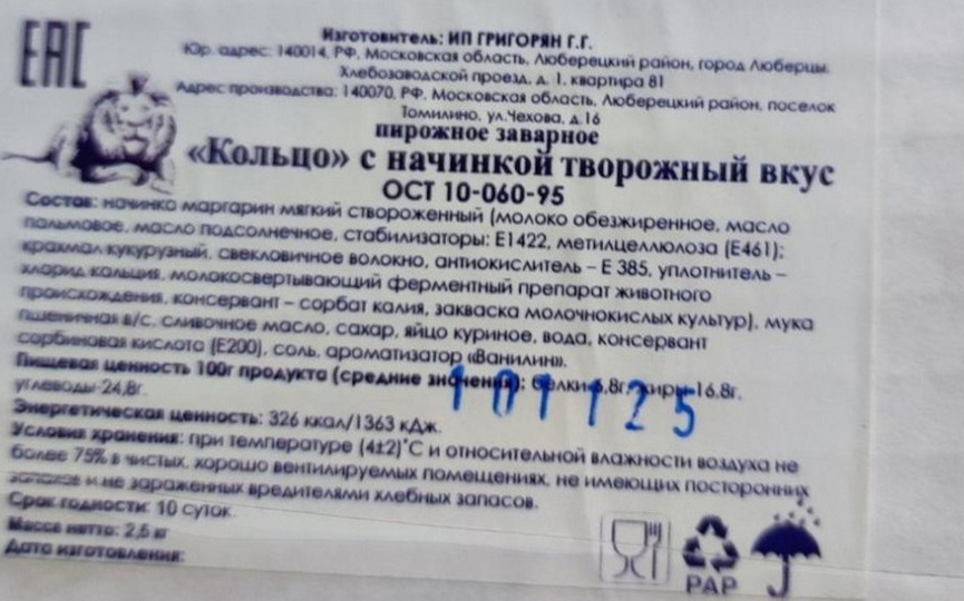 Производителем данной продукции является ИП Григорян Г.Г. (Россия), поставщик на территории Беларуси - ООО "Наш вкус".