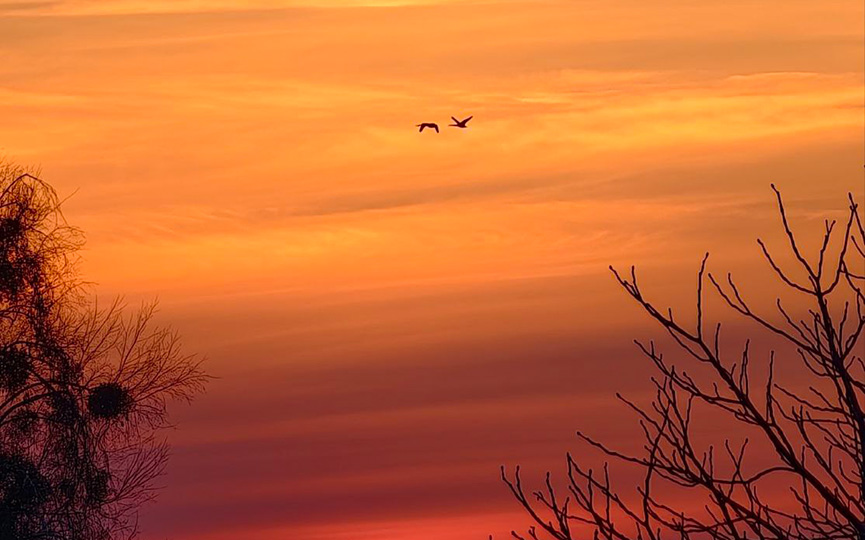 Наш подписчик Андрей Синкевич продолжает радовать красивыми фото и видео. Сегодня это пара грациозных лебедей на фоне живописного закатного неба. Величественные птицы пролетели над городом,