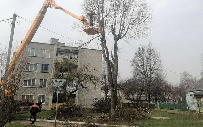 Месячник по благоустройству с каждым днем набирает обороты. В агрогородке Русино коммунальники проводят весеннюю обрезку деревьев.