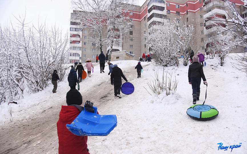 В зимнее время, когда лежит снег, излюбленным развлечением для горожан и их детей становится катание на тюбинге.