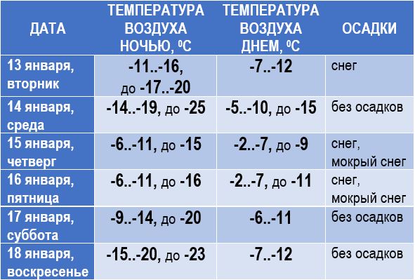 13 января, вторник