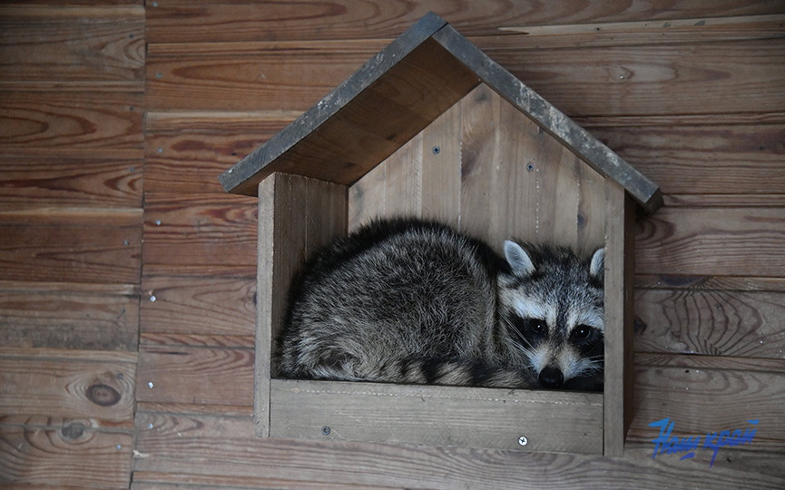 Как добавили в парке животных, пока Есения еще адаптируется к новым условиям. Она облюбовала полочку в домике и чаще предпочитает находиться в своем жилище. Особенно, когда работники приносят в вольер еду, она прячется и выглядывает буквально одним глазком. И все же потихоньку выходов в вольер становится больше, в том числе при работниках парка".