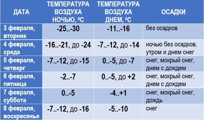 Прогнозируется ухудшение погодных условий. Облачно, временами осадки – снег, мокрый снег, днем возможен дождь, а в результате чего местами гололед, метель, на дорогах гололедица. Усиления ветра могут достигать 5–10 м/с, до 14 м/с. Ночью – 7–12 мороза, местами до -15, днем – от нуля до 5 мороза, где-нигде до -7.