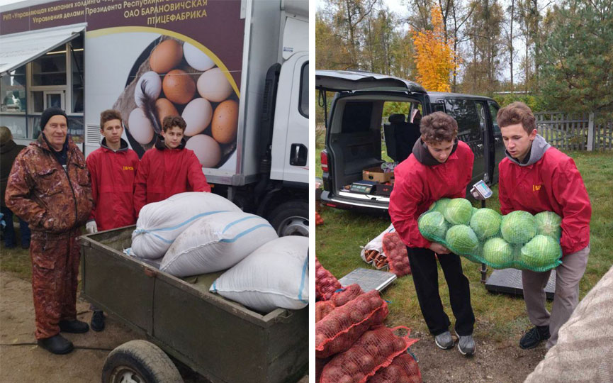Ребята из отряда «ДОБРОволец» первичной организации общественного объединения БРСМ Леснянской средней школы в рамках республиканской акции «Мы выбираем помощь пожилым людям» помогают в доставке сельхозпродукции с осенней ярмарки жителям агрогородка Лесная.