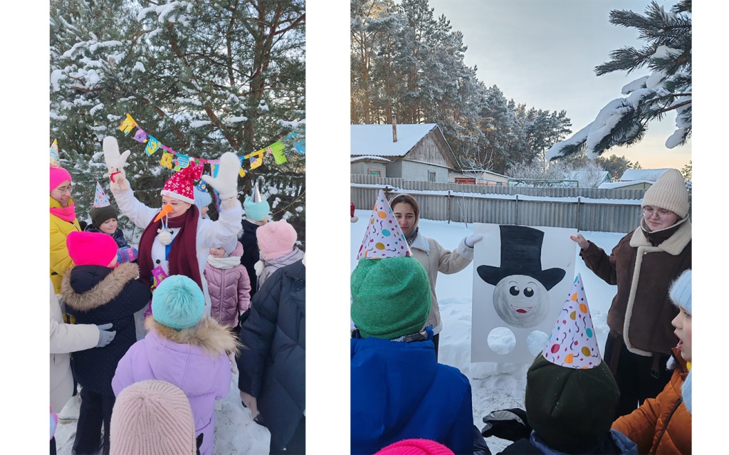В программе, организованной Мирновской детской школой искусств, были зимние игры, веселье и самый настоящий Снеговик, который пришел на звуки веселья. Подарком для снежного любимчика стало общение и искренний смех детей.