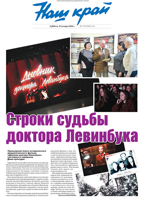 Премьерный показ исторического документального фильма «Дневник доктора Левинбука» состоялся в городском Доме культуры. Барановичи неслучайно стали местом, которое выбрали для демонстрации премьеры. Во-первых, население города до Великой Отечественной войны примерно наполовину состояло из жителей еврейской национальности. Во-вторых, описанные в картине события происходили именно здесь, ведь в нашем городе было еврейское гетто. Подробнее – в свежем номере газеты «Наш край» за субботу, 31 января («Строки судьбы доктора Левинбука»).