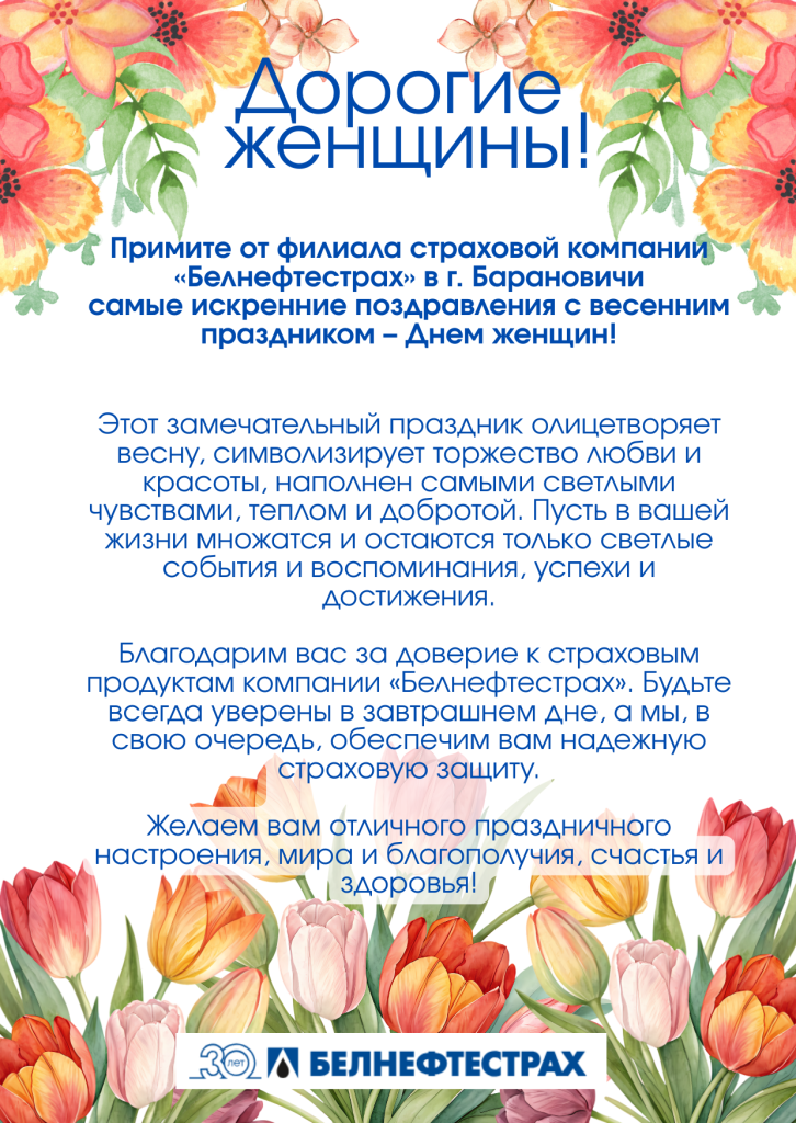 Поздравления с весенним праздником от филиала страховой компании «Белнефтестрах» в г. Барановичи