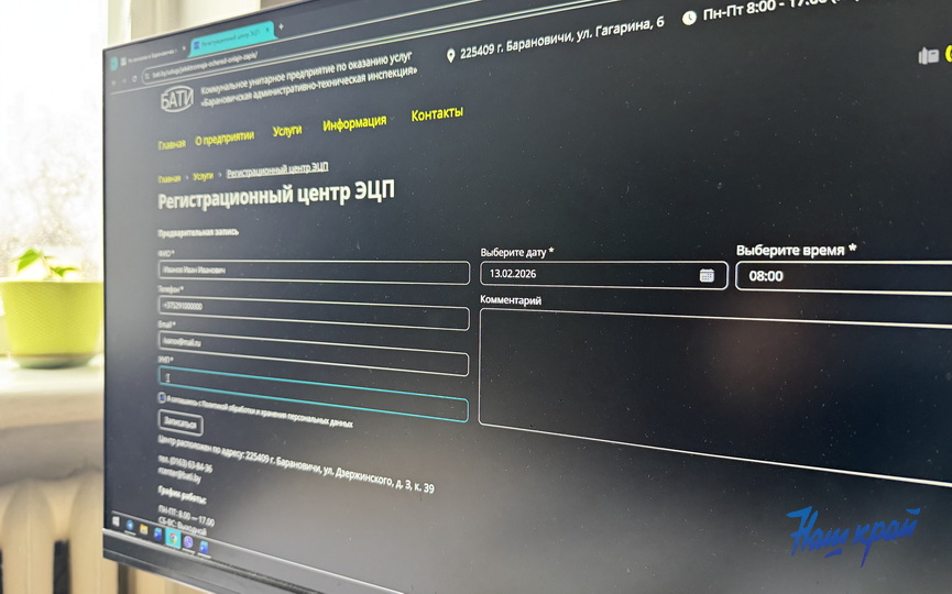 Регистрационный центр электронной цифровой подписи, который с ноября 2025 года работает в Барановичах на улице Дзержинского, 3, открыл предварительную запись, сообщили в административно-технической инспекции.