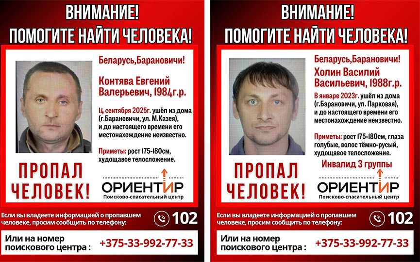 В Барановичах пропали двое мужчин: один – в сентябре нынешнего, второй – в 2023 году