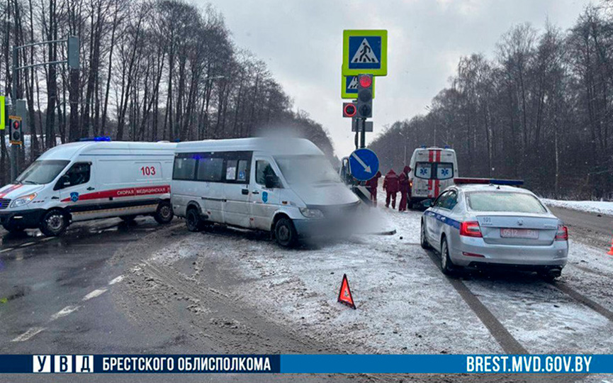 Машина скорой помощи с включенной сиреной столкнулась с маршруткой в Брестском районе. Об этом сообщили БЕЛТА в УВД Брестского облисполкома.