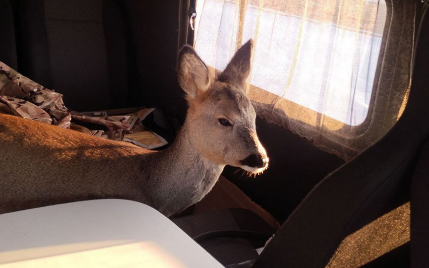 Обдумав ситуацию, работники лесхоза забрали косулю к себе в УАЗ. "Мы включили печку ближе к задним сидениям. Она практически не двигалась, приседала, видимо, устала по такому снегу ходить. Через полчаса косуля отогрелась. Насыпали в ведро зерна, она поела. Давала себя погладить", - добавил Юрий Рудинский.