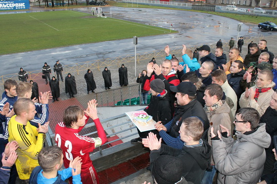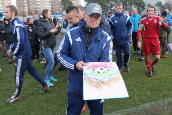 А хозяева после матча, понурив головы, отправились поначалу в раздевалку, но были остановлены своими болельщиками. Все игроки команды во главе с капитаном Александром Мятем были приглашены на трибуну, где фанаты поблагодарили футболистов за игры этого сезона и вручили футболистам огромный торт в виде эмблемы футбольного клуба «Барановичи».