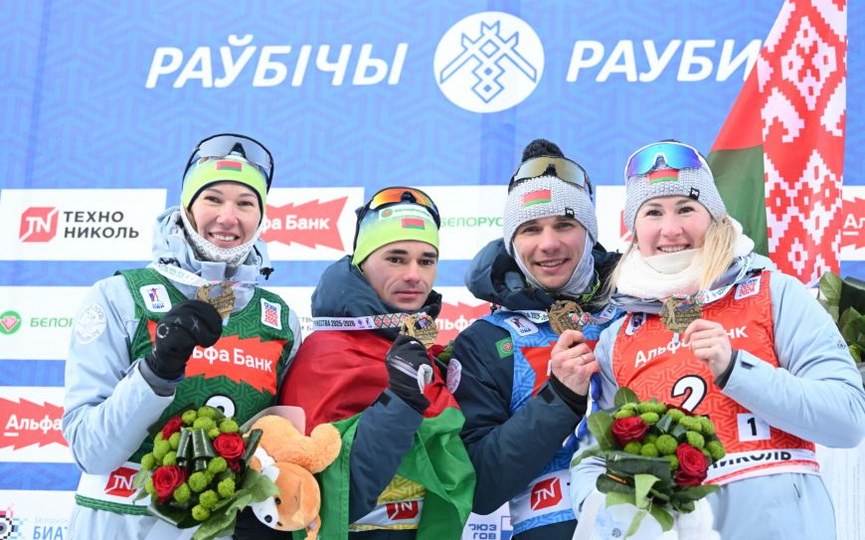 Участие в смешанной эстафете 4х6 км приняли три четверки из нашей страны и шесть российских квартетов. В состав главной белорусской команды вошли Динара Смольская, Анна Сола, Степан Данилов и Антон Смольский. На стартовом этапе Динара была безупречна на стрельбе и передала эстафету второй в 20 секундах позади лидера.